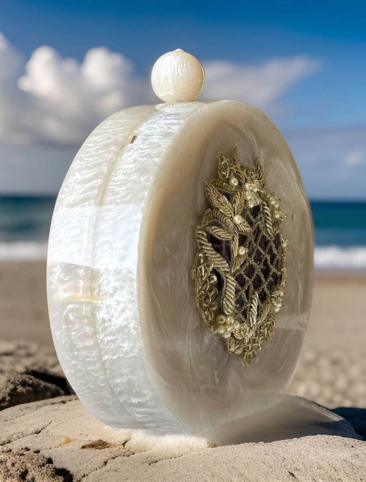 Bolso de mano de carcasa dura de resina de diseñador, monedero portátil para fiesta de boda, bordado a la moda, borla, perla, abalorios de diamantes