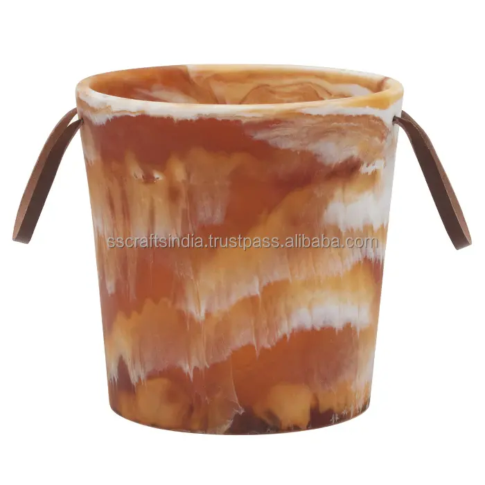 Cubo de hielo de resina para fiestas Cubo de hielo de forma redonda Cubo de hielo de color marrón de resina de remolino de nuevo diseño con asas de cuerda de cuero