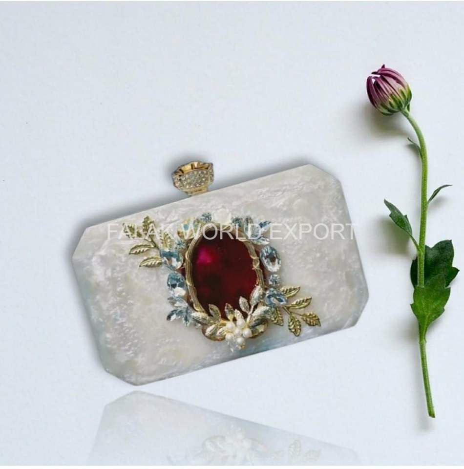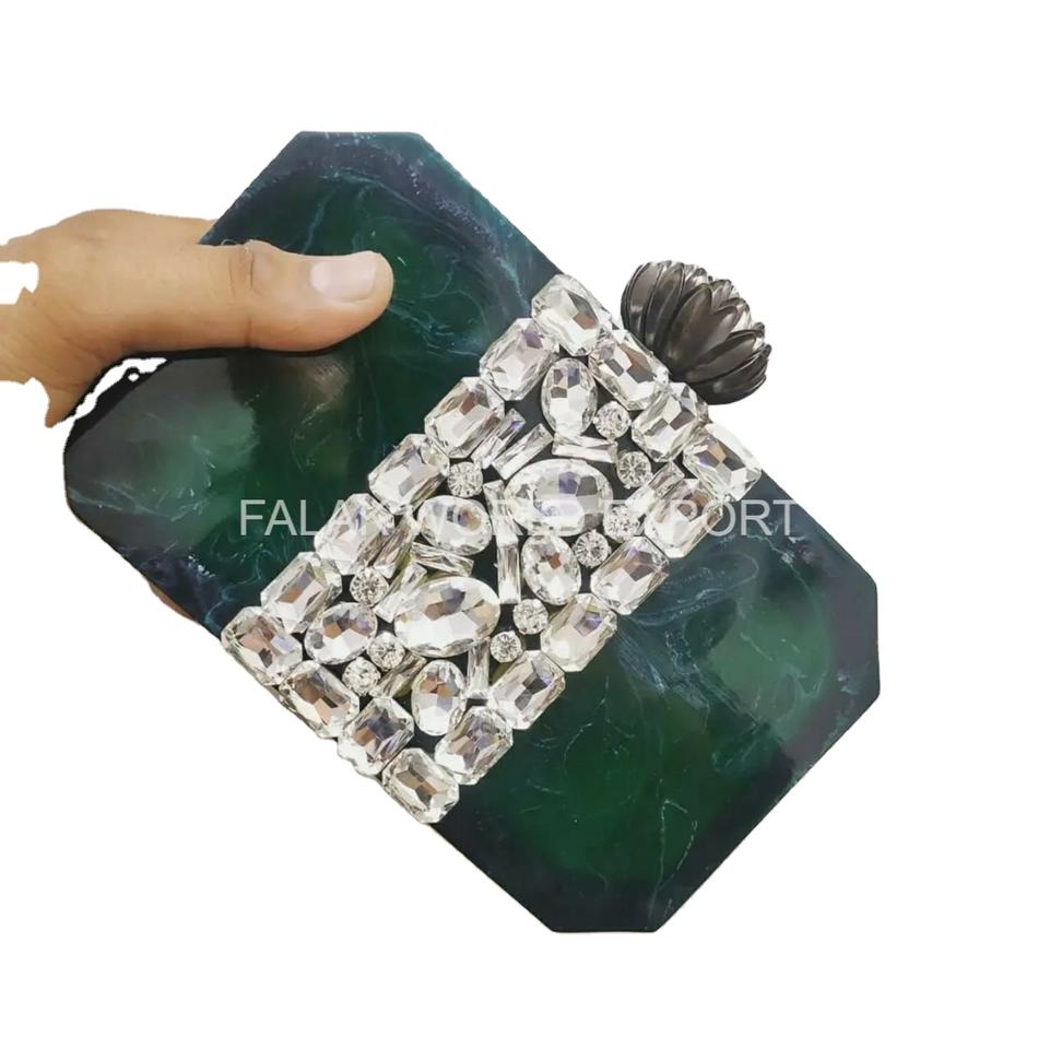 Bolso de mano de resina de lujo para mujer de diseñador con mango de metal dorado estilo de madera rectangular para fiestas nocturnas y recuerdos