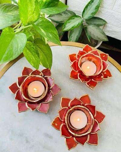 Resina Lotus Diya Diwali decoración Pooja artículos aceite mecha hogar Oficina templo Akhand inauguración de la casa Favor devolución regalos Art Deco