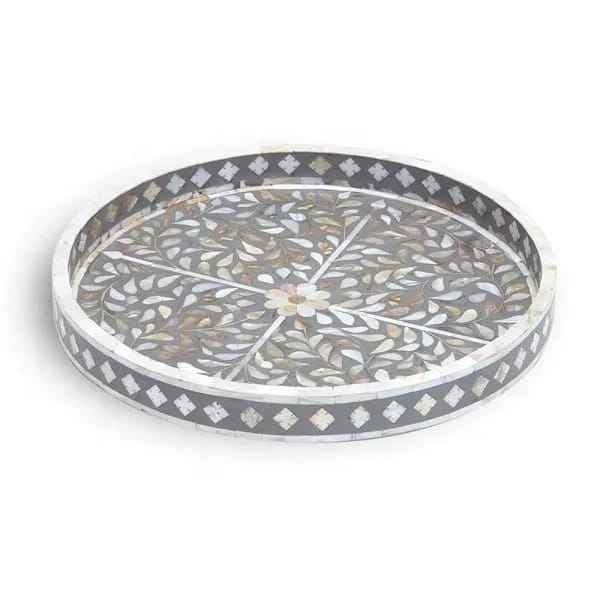 Bandejas de servir y almacenamiento con incrustaciones de resina y MOP, acabado natural, para Ramadán, Eid, festivas, redondas, modernas, de la mejor calidad, para la mesa.