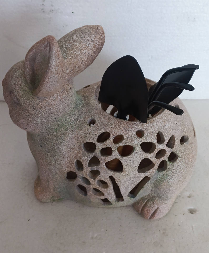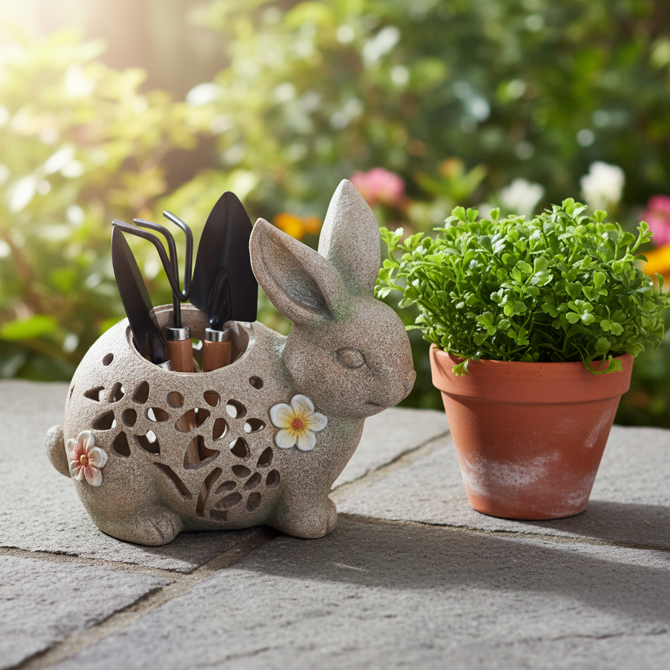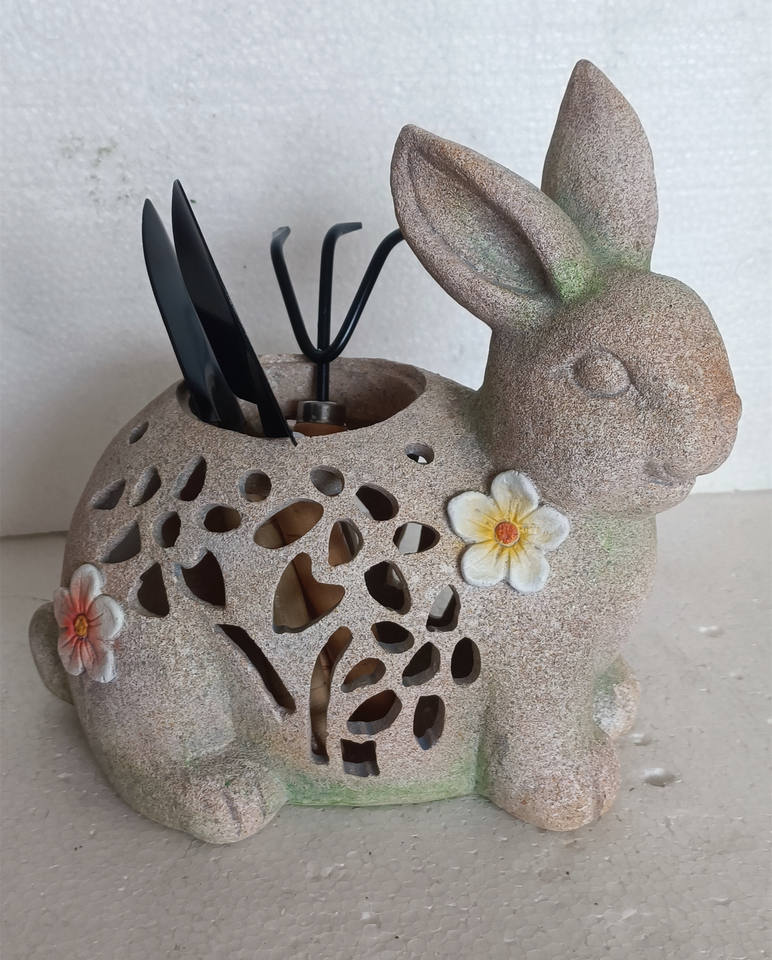 Estatua de conejo de resina, escultura con forma de Animal con paleta para macetas, juego de herramientas de jardín para adornos de jardín y macetas y jardineras