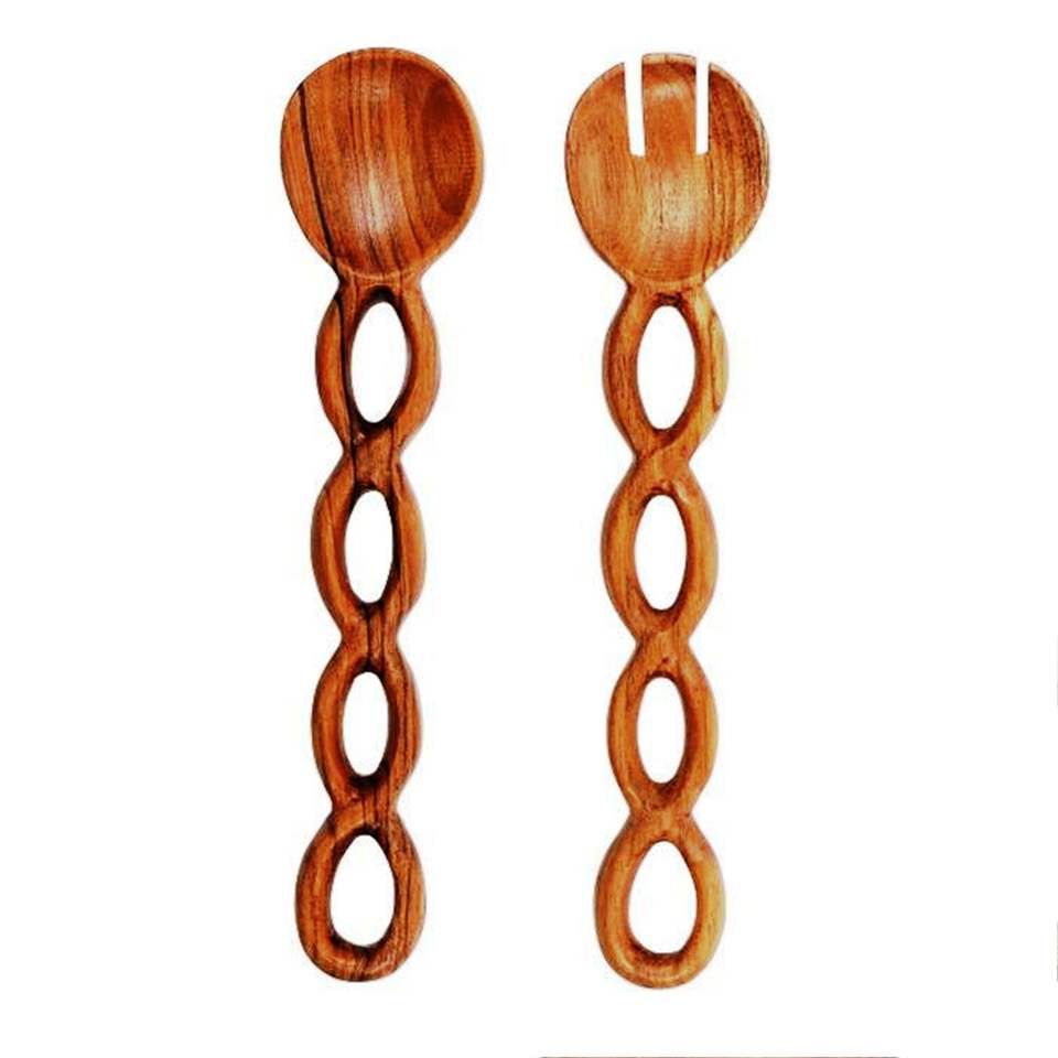 Juego de Servidores de Ensalada de Resina, Madera Natural con 2 Espátulas, Utensilios Hechos a Mano Sostenibles