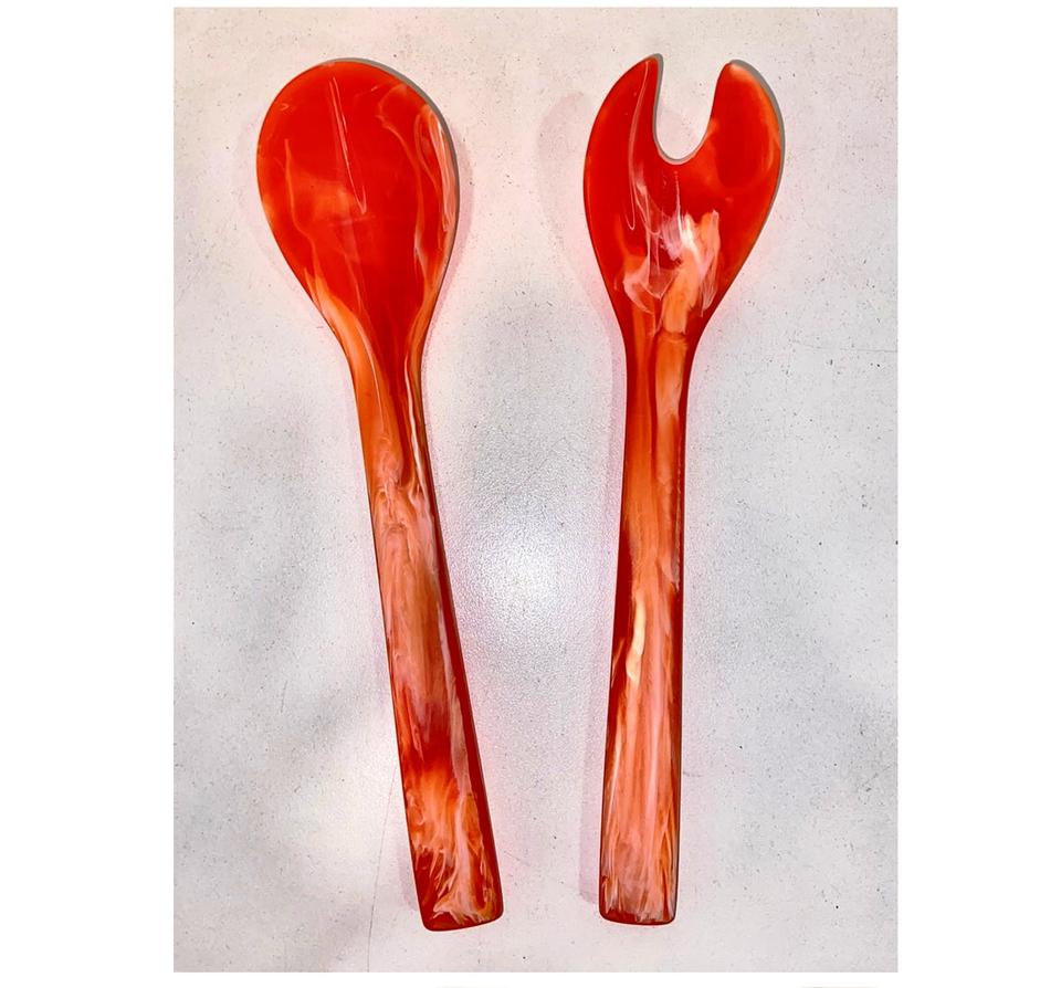 Servidores de ensalada de resina SERVIDOR DE ENSALADA DE MADERA JUEGO DE 2 HECHOS A MANO ÚNICO KETCHENWAR