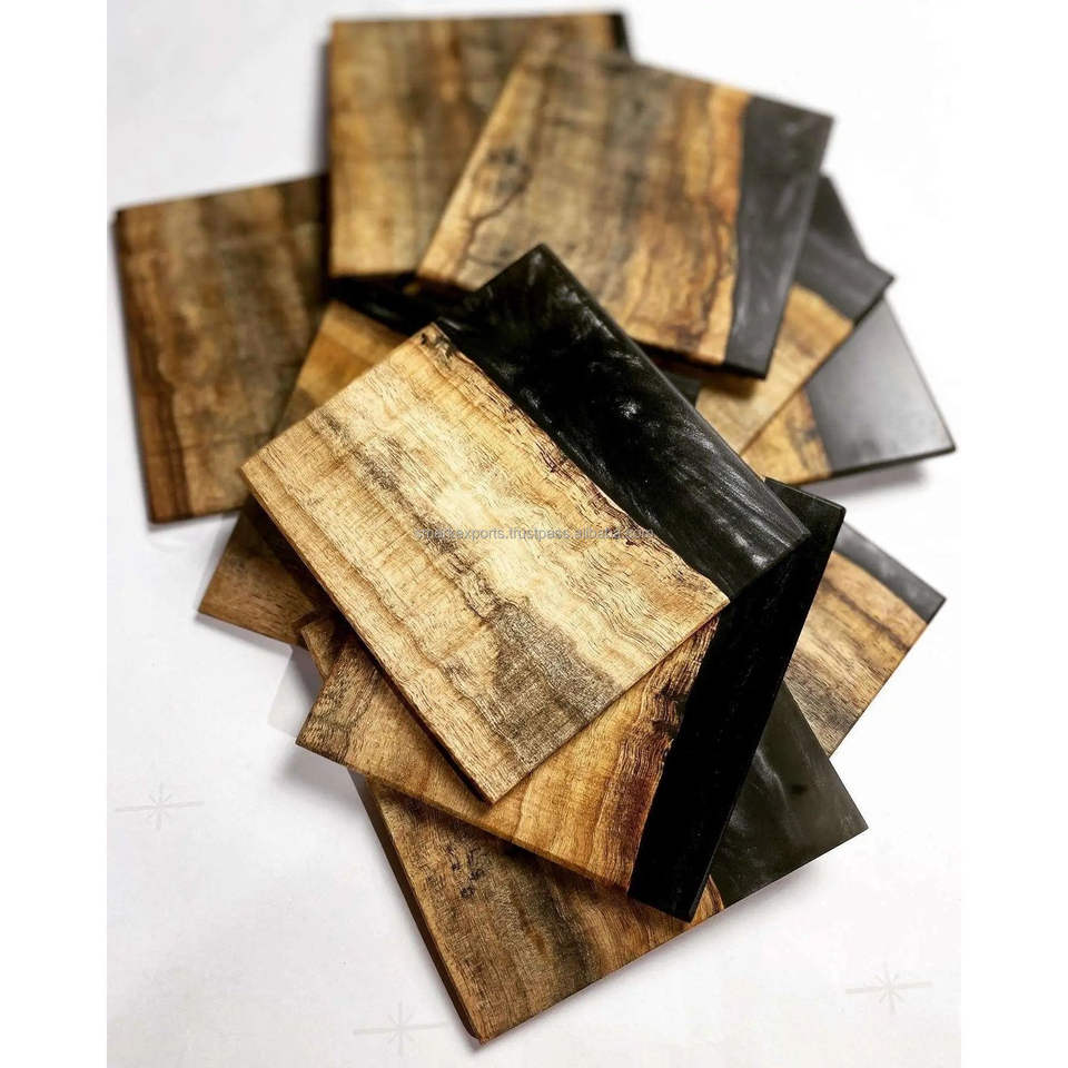 Juego de posavasos de madera de resina, posavasos redondo y cuadrado para bebidas, posavasos para té, comedor, cocina, elegante barra de café, accesorios