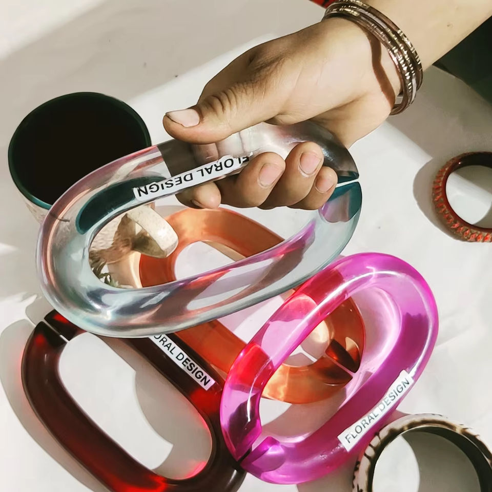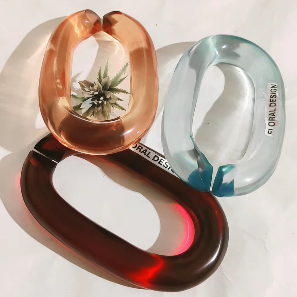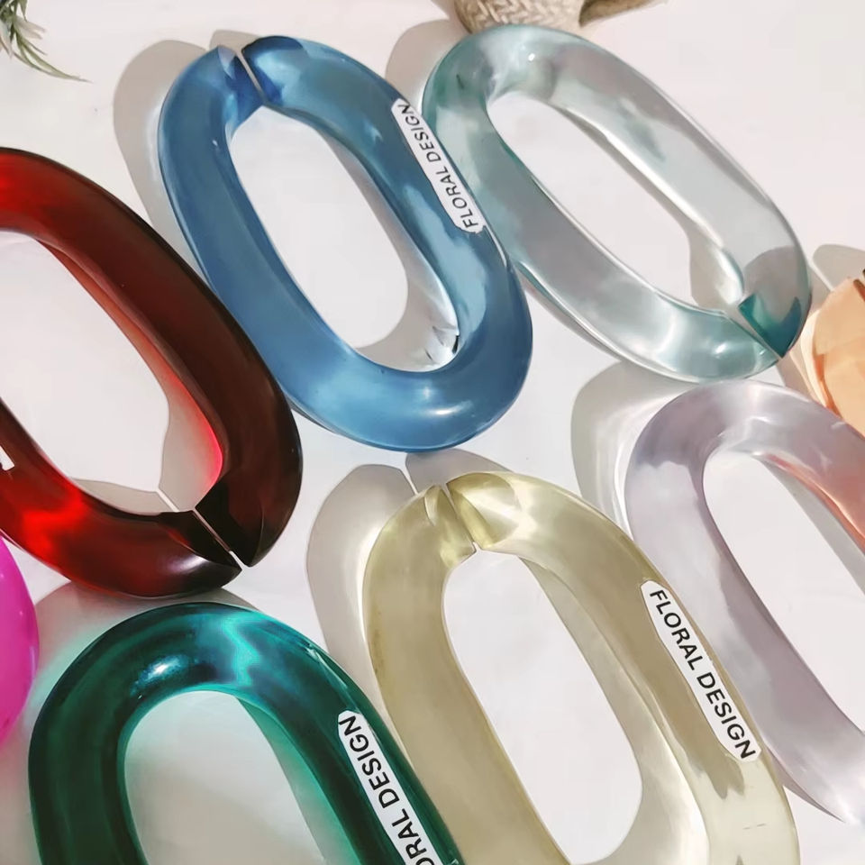 Decoración de pared con cadena de resina. Personalización de eslabones de resina de gran tamaño y colores claros. Disponibles en varios colores.