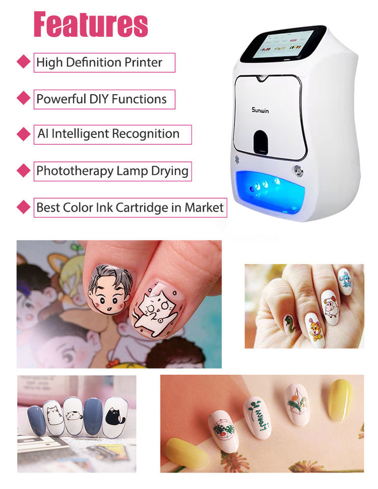 Resiste el secado Nueva impresora 3D para decoración de uñas Impresora alta Potente funciones DlY Al Reconocimiento inteligente Lámpara de fototerapia Secado