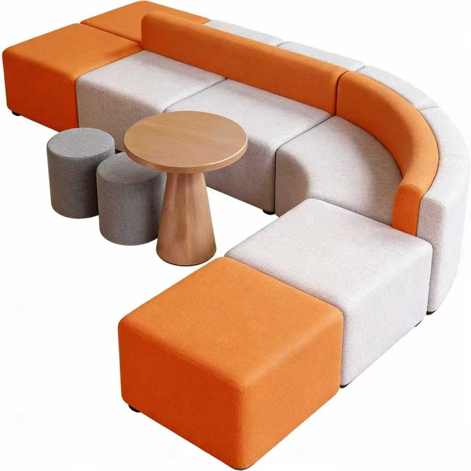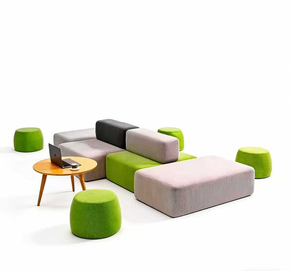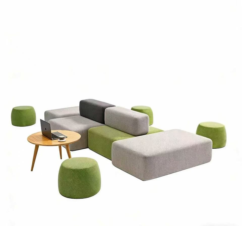 Sofá Cuadrado para Área de Descanso, Combinación de Sofás para Instituciones de Capacitación, Bancos, Hoteles, Salas de Espera, Sofá para Áreas Comerciales con Taburetes