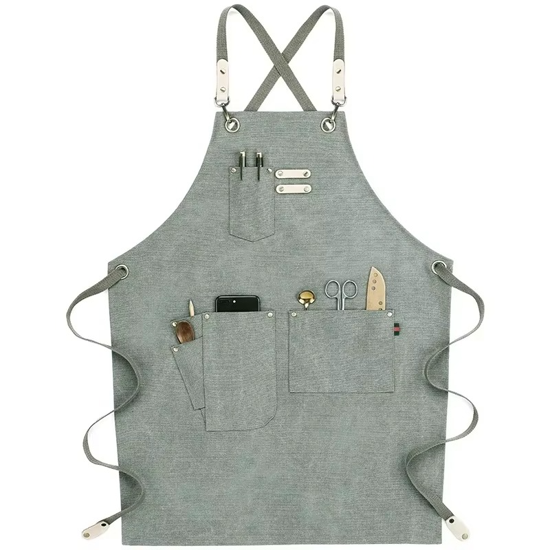 Delantal de Cocina con Logotipo Personalizado para Restaurante, Bar o Cafetería, con Tirantes Cruzados, Resistente al Aceite, de Lona de Algodón Resistente y Reutilizable