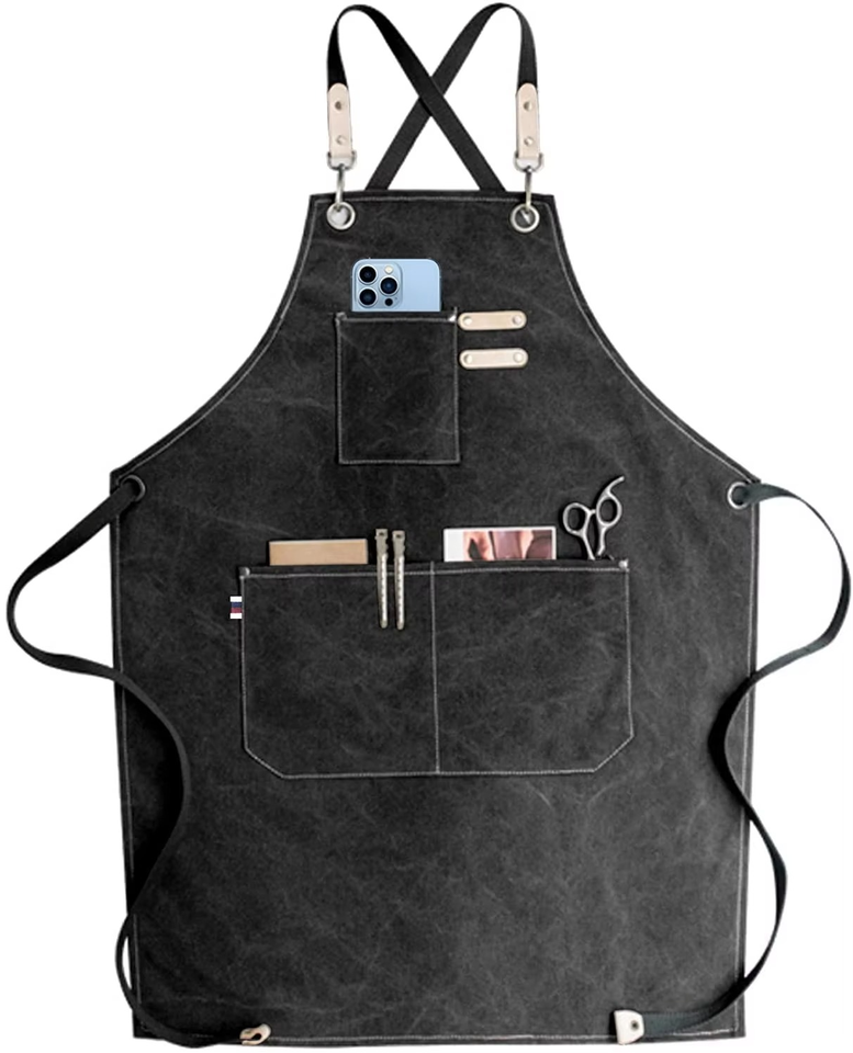 Delantal de Cocina Personalizado con Logotipo para Restaurante, Bar o Cafetería, Delantal de Chef de Lona de Algodón con 3 Bolsillos y Espalda Cruzada