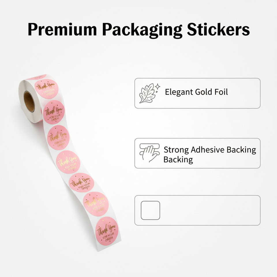 Etiquetas de Seguridad para Bolsas de Entrega de Alimentos, Impresión en Rollo para Cajas de Embalaje de Papel PLA con Logotipo Personalizado para Restaurantes, con Lámina Dorada