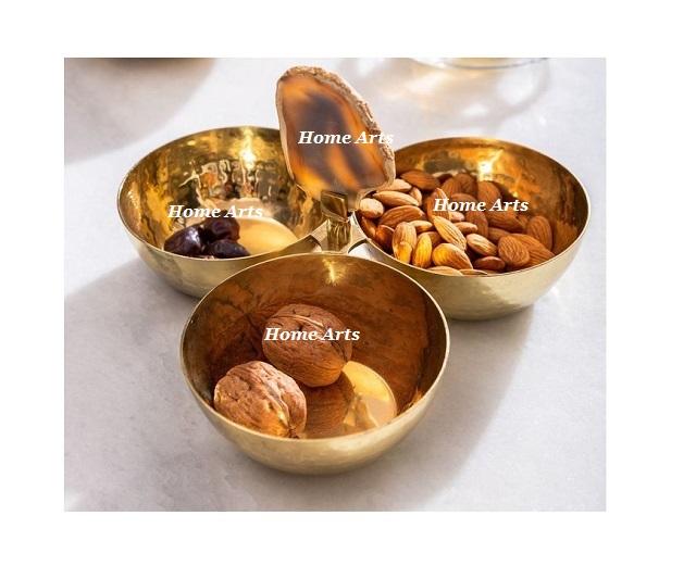 Restaurante Servidor de nueces decorativas Diseño fabuloso Frasco de chocolates de frutas secas de aluminio sólido con 3 compartimentos