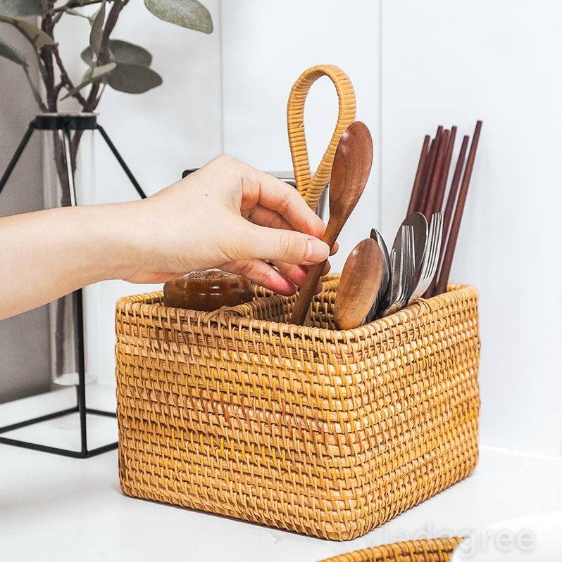 Organizador de utensilios de cocina para el hogar, soporte de ratán, cesta de almacenamiento, decoración de encimera, restaurante