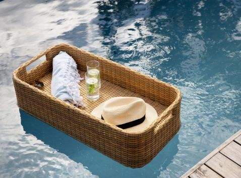 Restaurante PE Ratán natación Piscina flotante Bandeja eco amigable desayuno flotante Hotel Agua Desayuno flotante Bandeja para servir