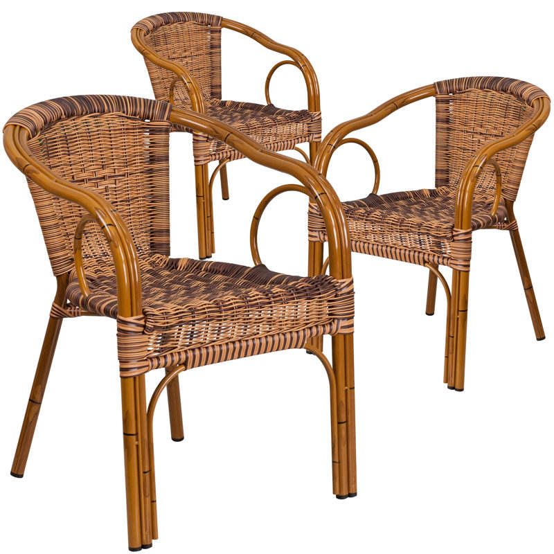 Silla de patio de restaurante con ratán y bambú-Marco de aluminio Muebles de exterior