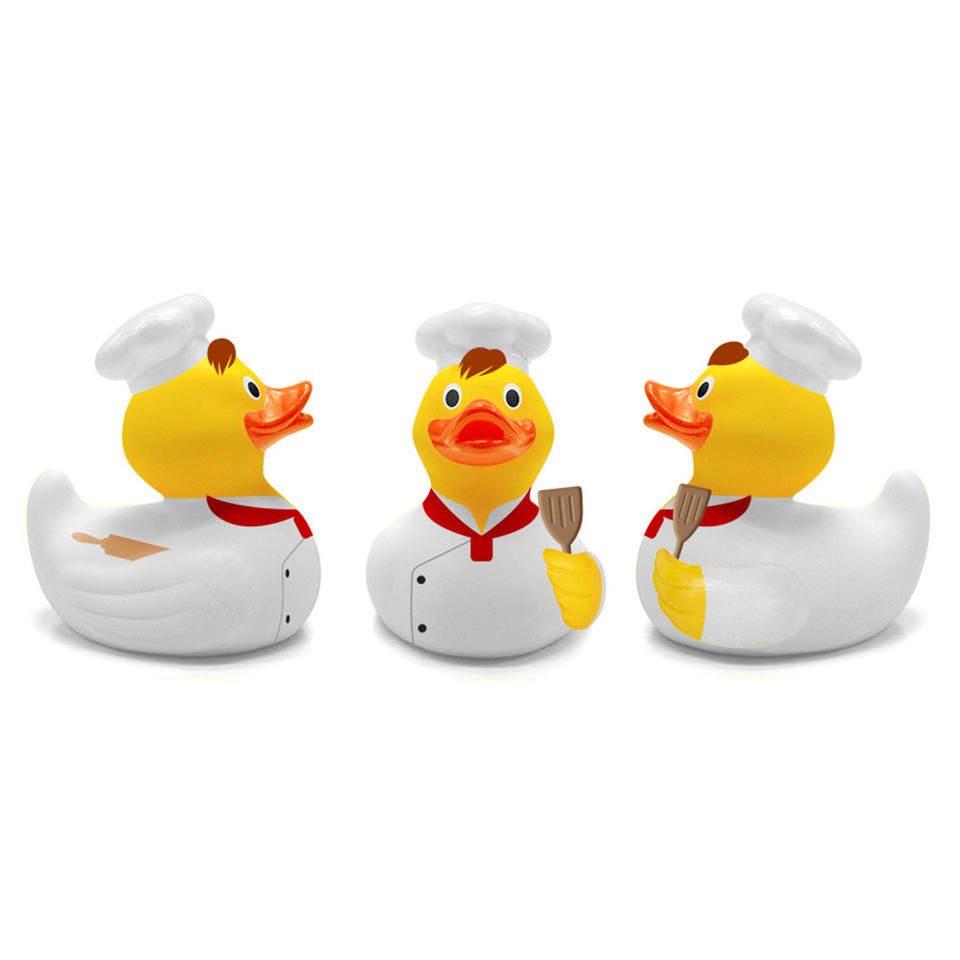 Pato de goma amarillo de PVC para niños, artículo promocional de plástico OEM ODM, juguete de baño personalizado para restaurante, Chef de cocina occidental