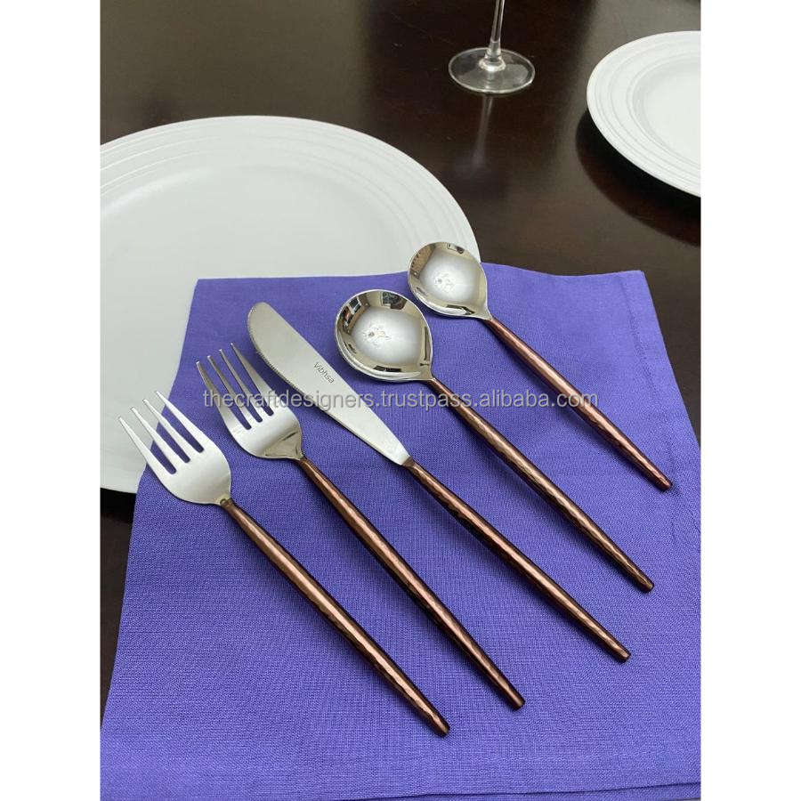 Juego de Cubiertos Plateados para Restaurante, Juego de Cubiertos de Lujo Chapados en Oro, Juego de Cuchara, Tenedor y Cuchillo de 5 Piezas, Juego de Cubiertos para Decoración de Bodas