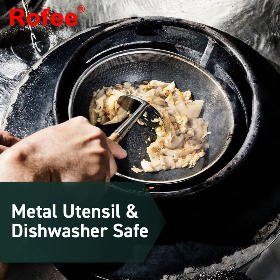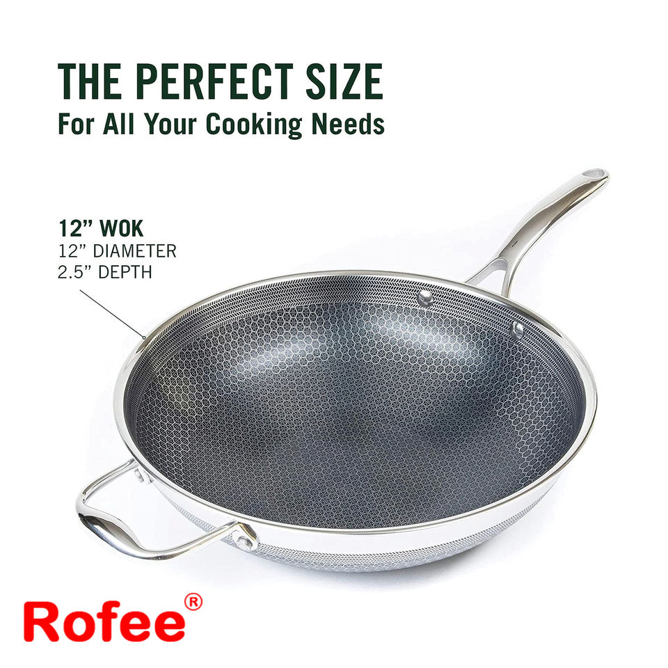 Restaurante de tres capas de acero inoxidable Cocina Comida cocinar panal Wok híbrido antiadherente calor uniformemente Wok de acero inoxidable