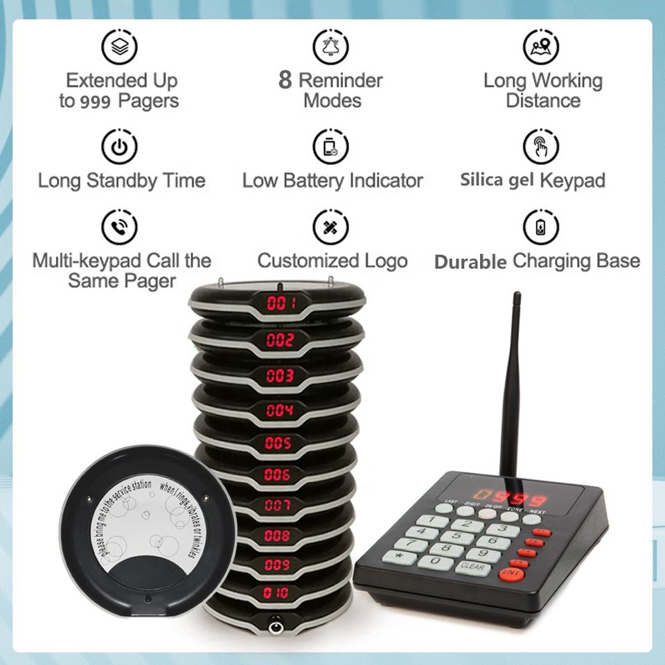 Sistema de Llamada Inalámbrico para Restaurantes, Buscapersonas Vibrador y Timbre de Mesa