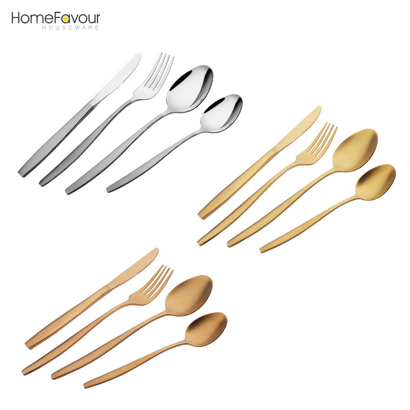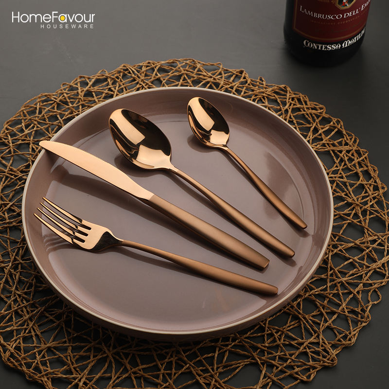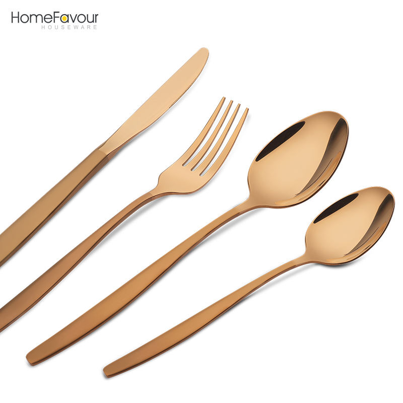 Restaurant flatware set spoons fork knife stainless steel gold cutlery