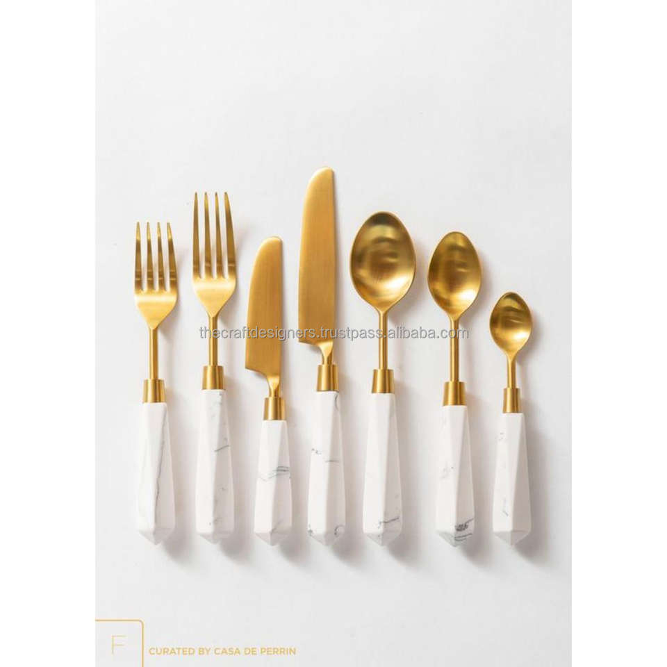 Juego de cubiertos dorados para restaurantes con asas de resina, mesa de Color verde, juego de cubiertos decorativo de nuevo estilo y cubiertos, superventas