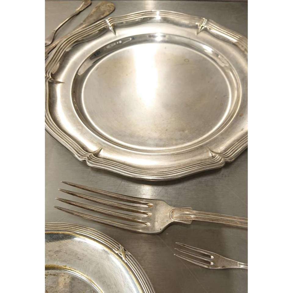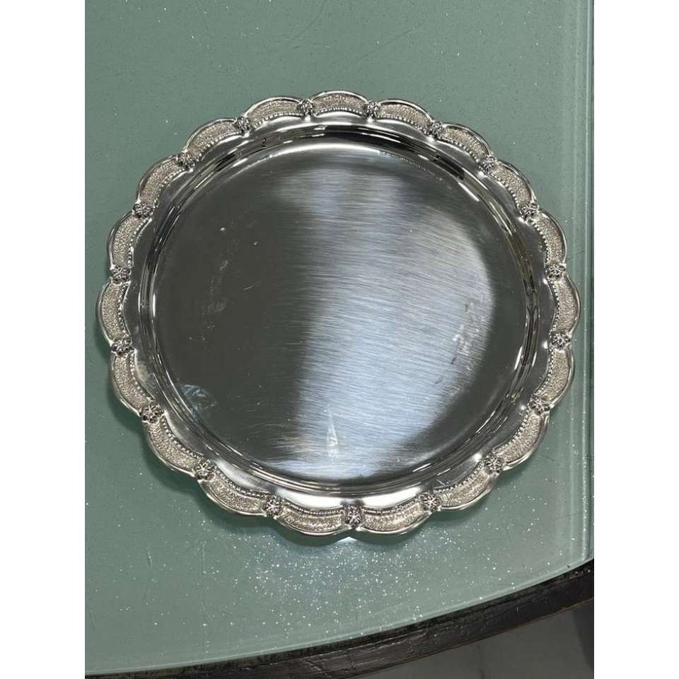 Vajilla para Restaurantes, Plato de Plata con Borde Personalizado, Plato Base de Latón, Apto para Contacto con Alimentos, Estilo Floral Grande de Metal, Plato de 14 Pulgadas