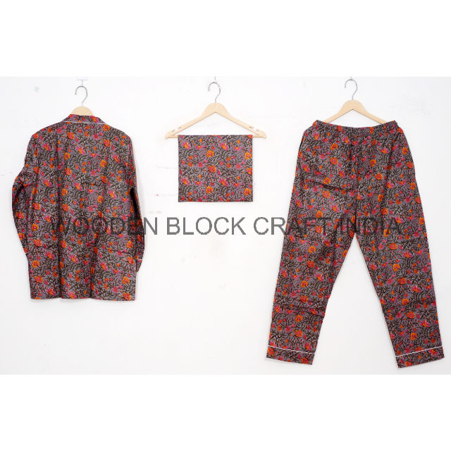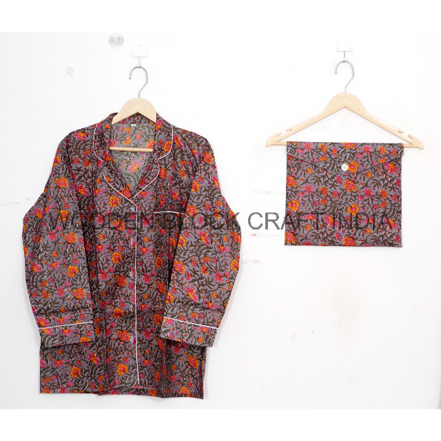 Restful Nights Collection Conjunto de ropa de dormir de algodón personalizable hecho a mano para mujer Tela de punto de verano Vibrant Sanganeri Floral