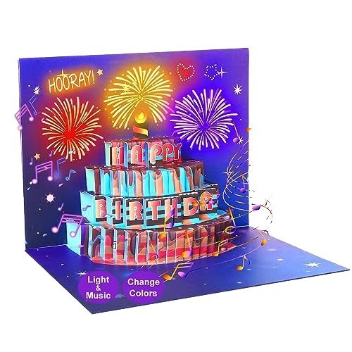 Venta al por menor 2 piezas Impresión Fancy Blue 3D Música Cantando Papel Tarjeta de felicitación de feliz cumpleaños con luz de música
