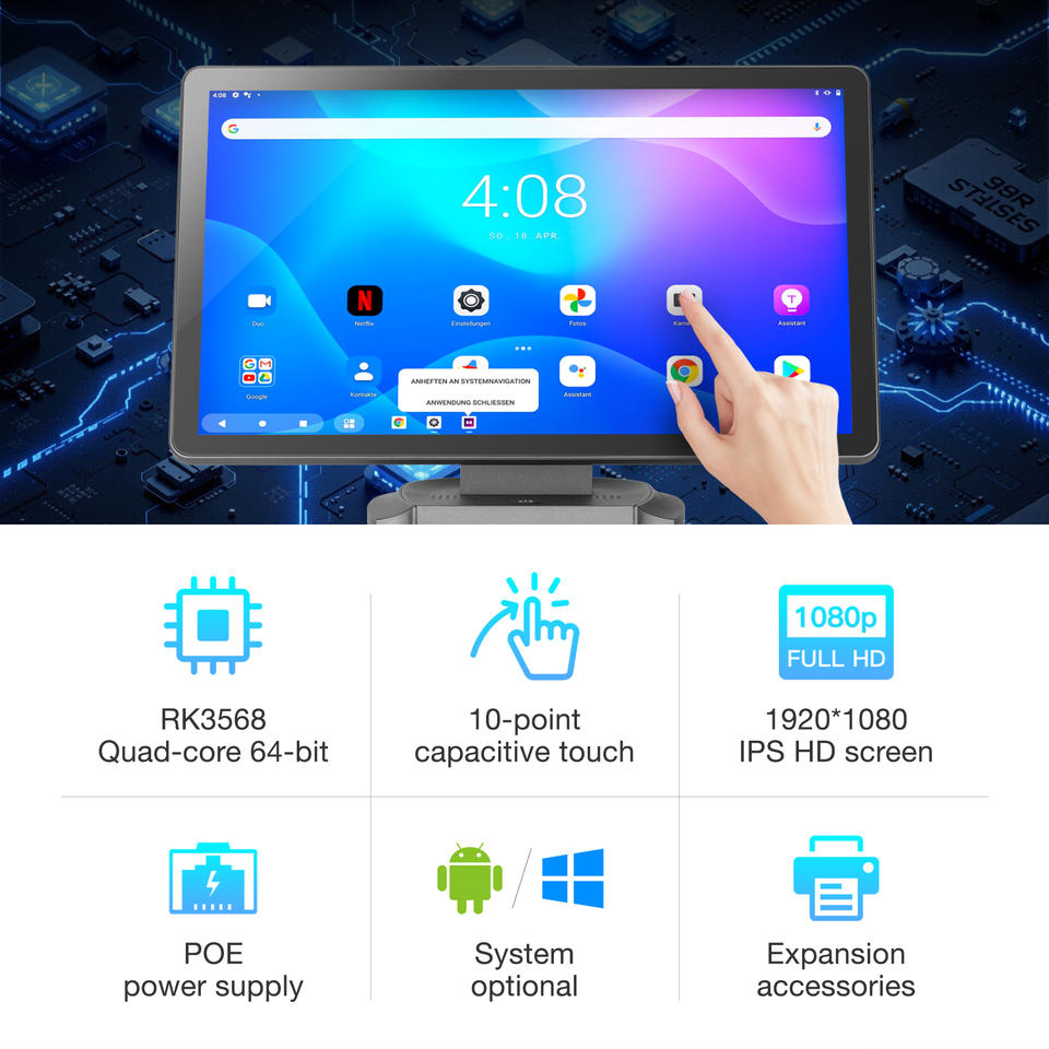 Sistema POS para Minoristas, Caja Registradora con Sistema POS para Windows, Monitores de Pantalla Táctil de 15.6 Pulgadas con Sistema de Pago NFC Integrado