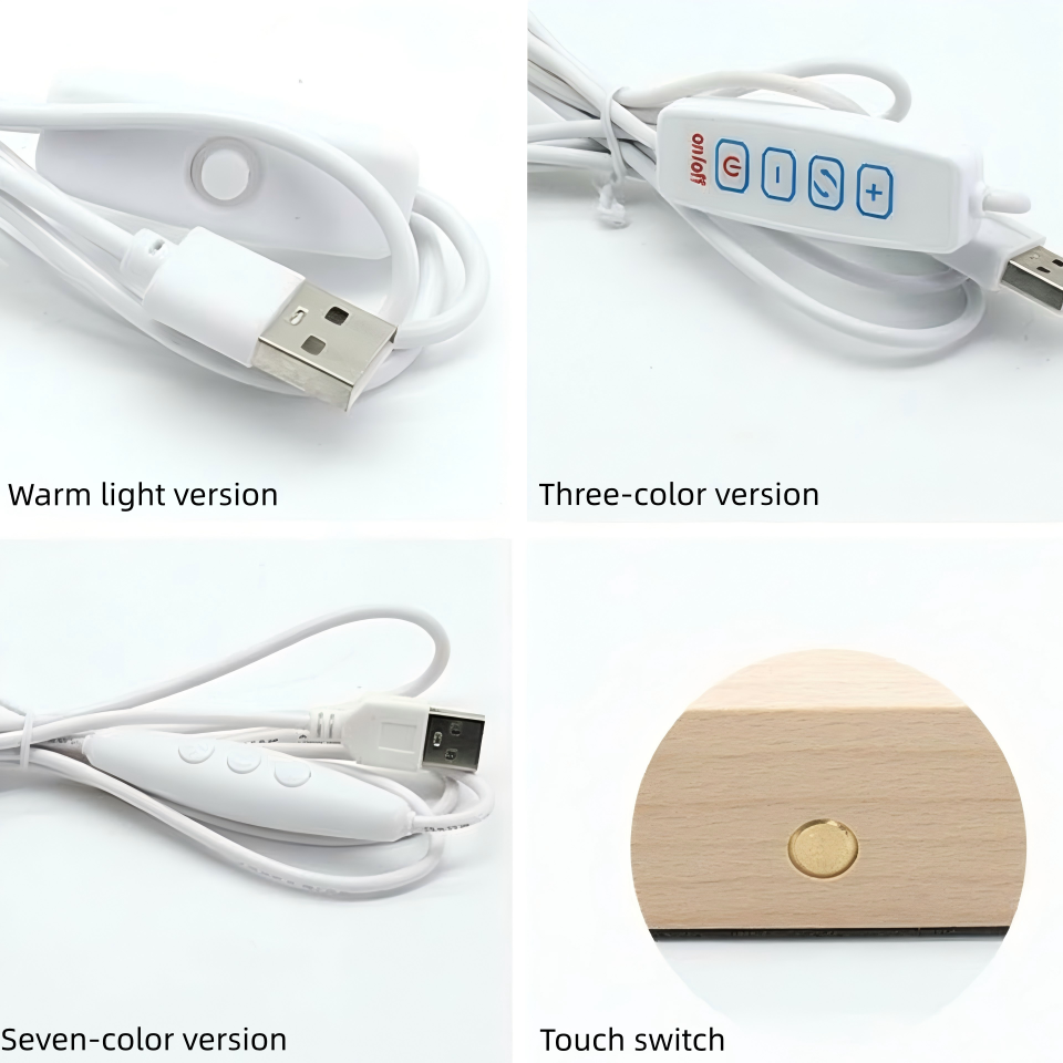 Lámpara Nocturna LED 3D Acrílica con Base de Madera Real, Luz Blanca Cálida Regulable, Lista para Venta al por Menor, para Decoración del Hogar