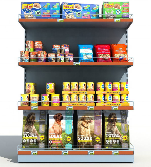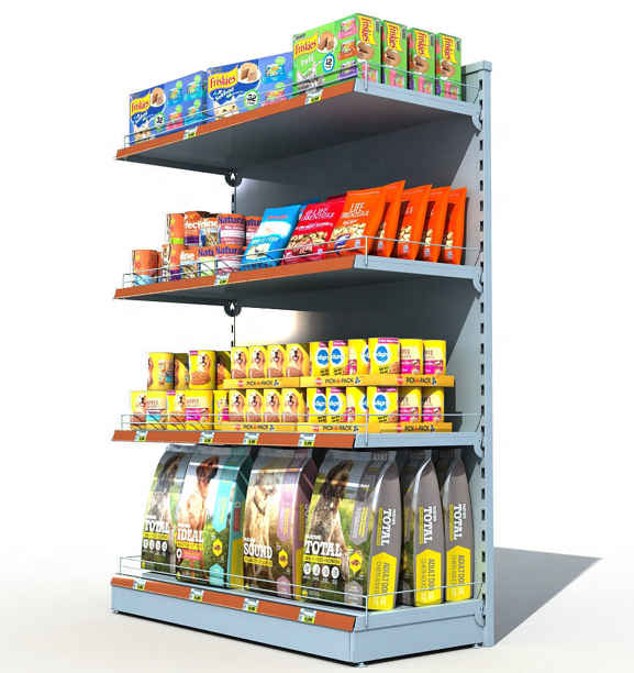 Retail Store Metal Pet Food Snacks Display Stand gandola estantes para tienda minorista