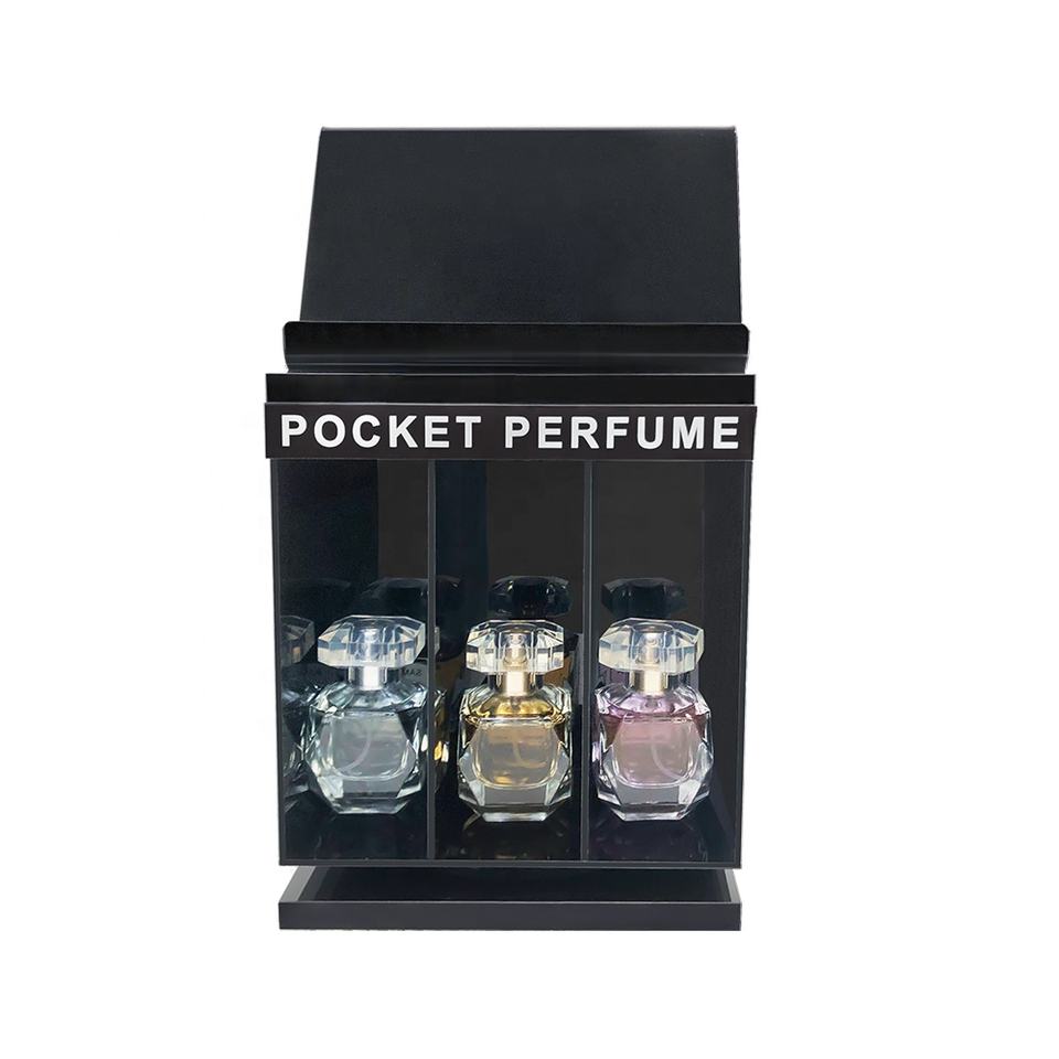 Tienda al por menor Nuevo diseño Giratorio Acrílico Cosméticos Perfume Soporte de exhibición Encimera Perfume Vitrina