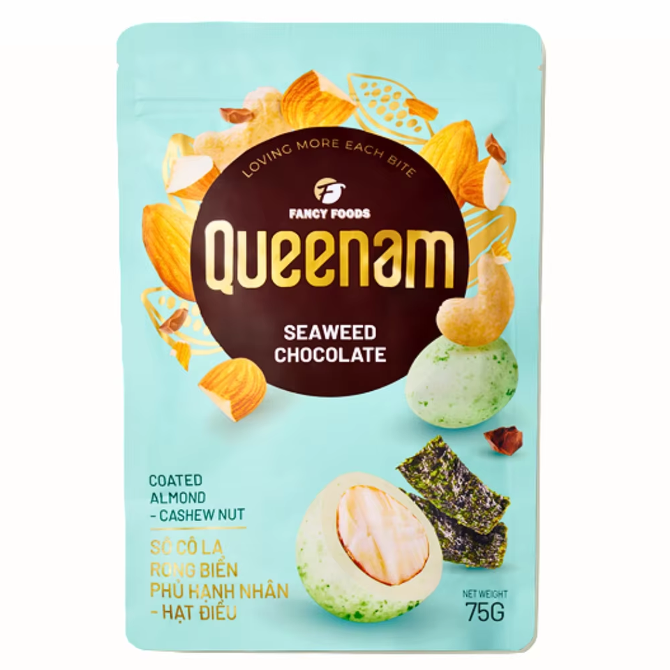 Contenido:Almendra y anacardo recubiertos de chocolate con algas