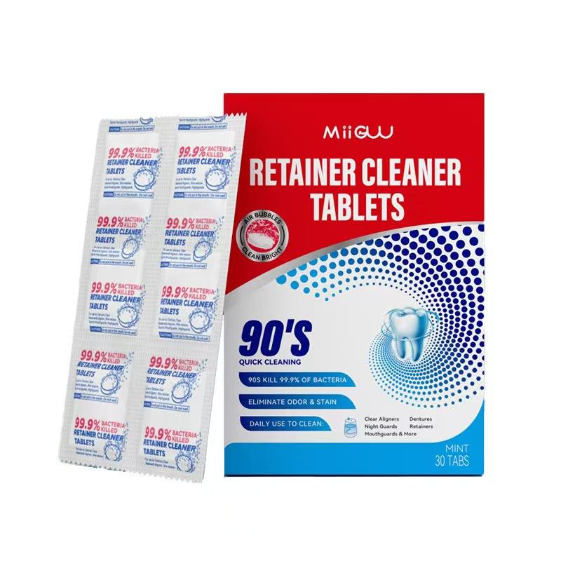 Tabletas Limpiadoras de Retenedores, Limpieza de Dentaduras Postizas, Elimina Manchas, Alineadores, Protectores Bucales, Perfecto para Limpiador de Retenedores Ultrasónico