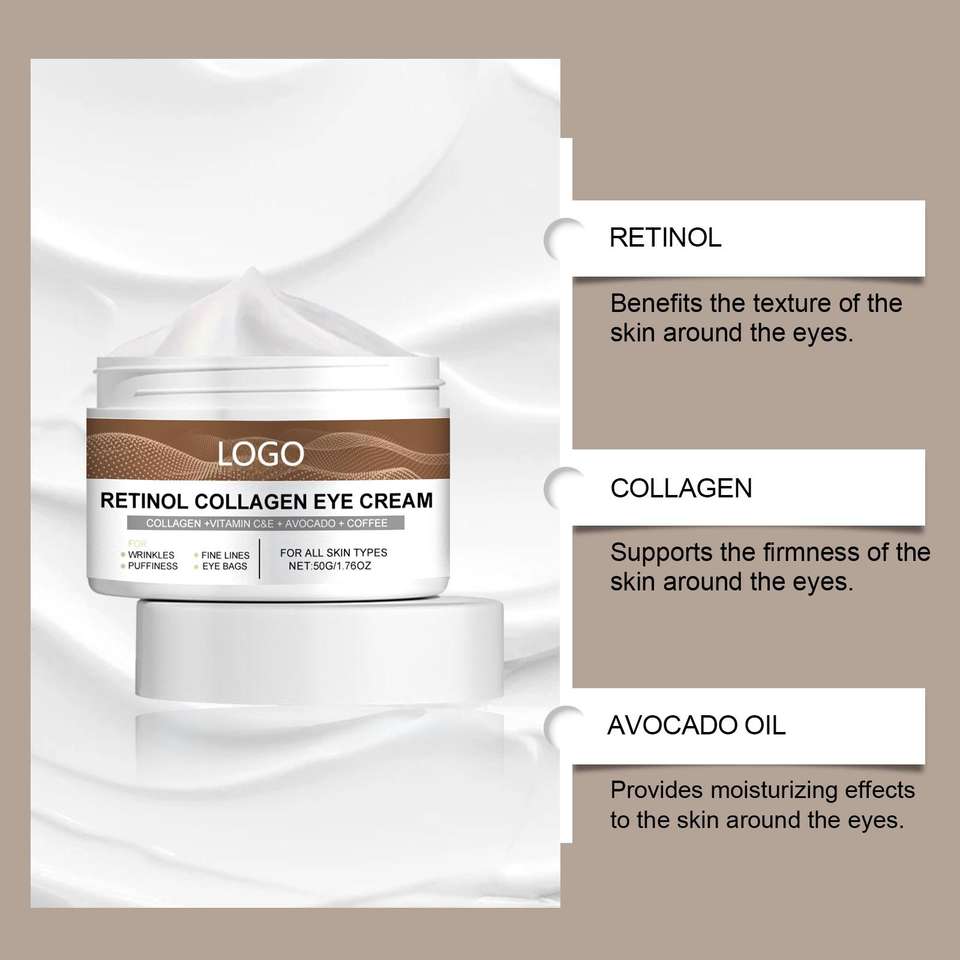 Crema Contorno de Ojos Antiedad con Retinol 50g, Marca Blanca OEM, Estimula el Colágeno, Reduce Arrugas, Reafirma e Hidrata