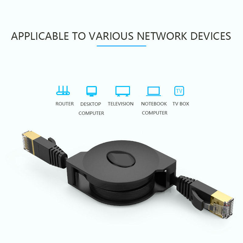 Cable de red plano retráctil Cat 6, cobre puro, 4 pares, 26 AWG Gigabit, cable de conexión de Internet de alta velocidad