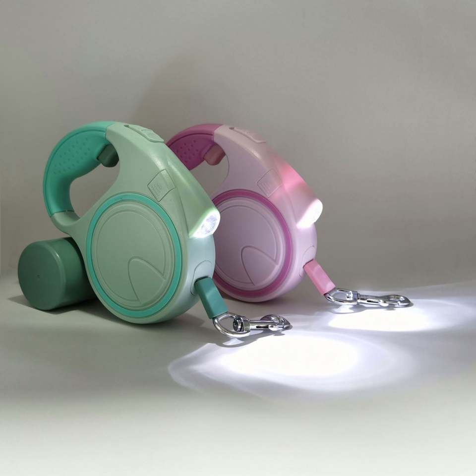 Correa Retráctil para Perro con Linterna y Dispensador de Bolsas para Desechos, Correa Resistente para Pasear Mascotas de Noche y Regalos Promocionales