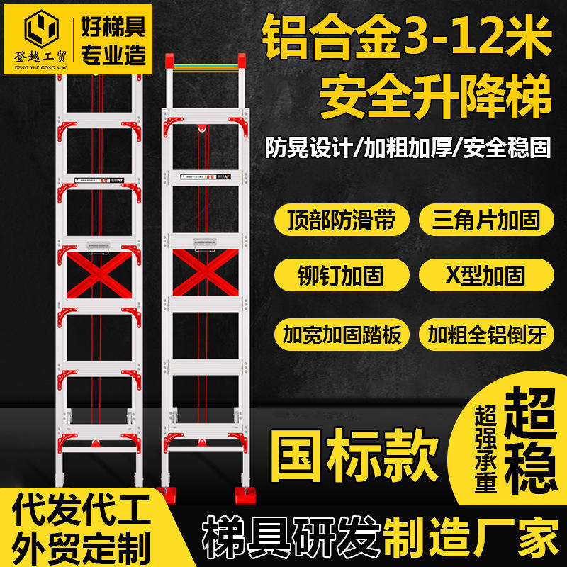 Escalera Retráctil de 3-12 Metros, de Aleación de Aluminio Reforzada, Plegable y Elevable, para Construcción y Uso Doméstico