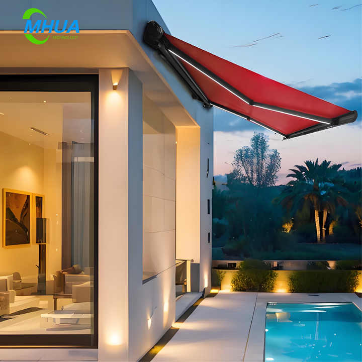 Hotel, Al aire libre, Camping, Playa, Comercial, Jardín, Patio trasero, Parasol, Toldo retractable, A prueba de agua, Eléctrico, Balcón, Dosel de lluvia, Decorativo, Protección contra la lluvia, Terraza, Cenador, Iluminación LED, Patio al aire libre, Jardín al aire libre, Toldos motorizados de la pérgola, Protección UV, CAFÉ TIENDA, Natación piscina, Residencial, VILLAAplicación