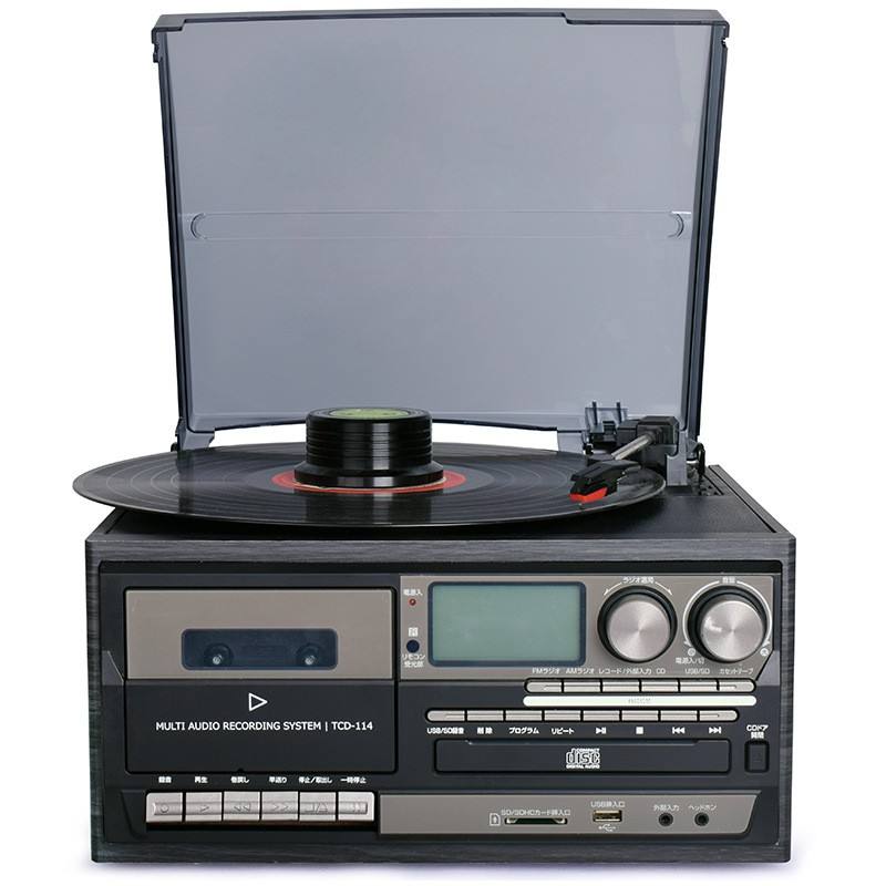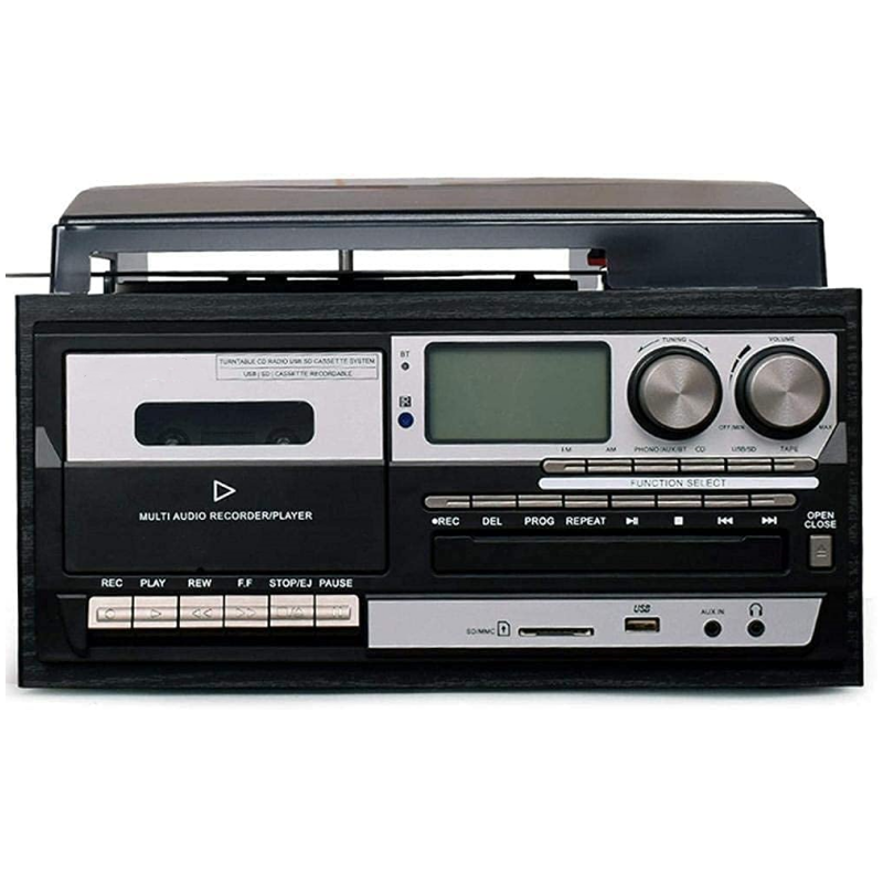 Varias fuentes de audio: Soporta varias fuentes de audio, incluyendo vinilo LP, CD, cinta, BT, disco U, tarjeta SD, FM/AM, USB y AUX, proporcionando opciones de reproducción versátiles para diferentes formatos de medios.