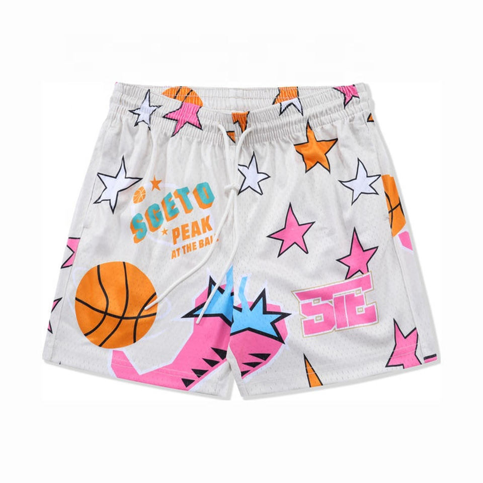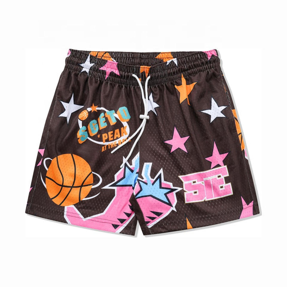 Retro 3 pulgadas en costura bordada ecológica Hip Hop baloncesto pantalones cortos verano estrella estampado entrenamiento hombres poliéster malla moda