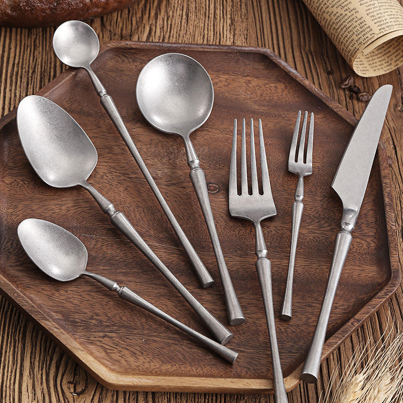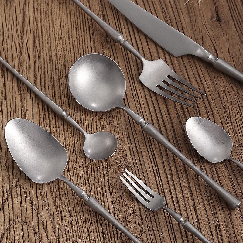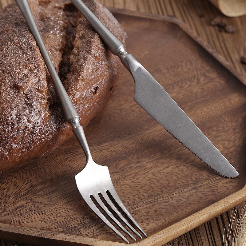 Juego de cubiertos Retro de acero inoxidable 304, cuchillo, tenedor, cuchara, forma especial, postre de hielo antiguo, cuchara para pastel, copo de nieve, juego de cubiertos de arena