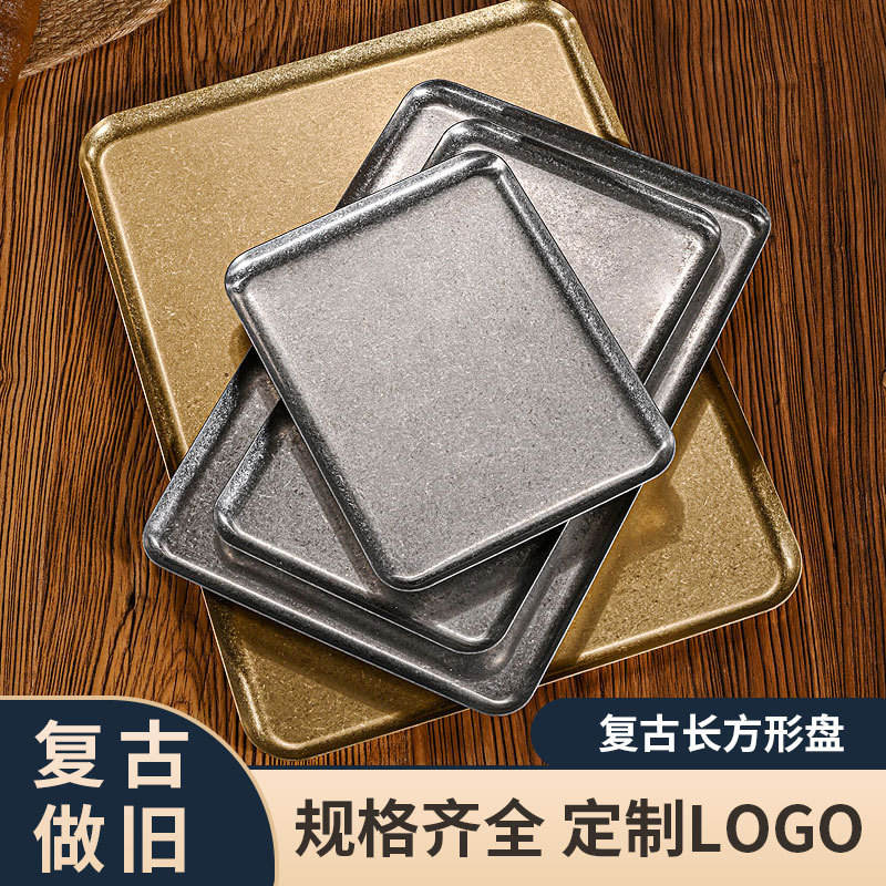 Bandeja Rectangular Retro de Acero Inoxidable 304, Color Dorado, Fondo Plano, Plato Bajo para Cafetería, Hotel, Comidas