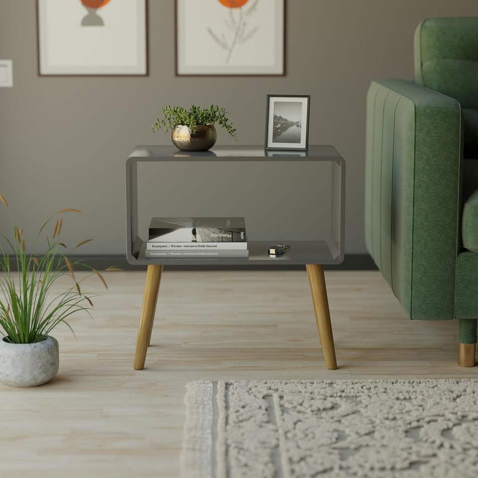 Mesa de Noche Retro, Mesa Auxiliar, Mesa de Cabecera para Espacios Pequeños, Revistero con Almacenamiento, Madera Sintética