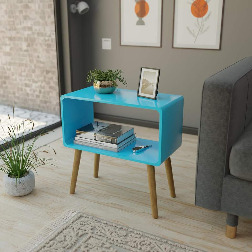 Mesa de Noche Retro, Mesa Auxiliar, Mesa de Cabecera para Espacios Pequeños, Revistero con Almacenamiento, Madera Sintética