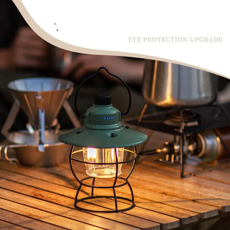Producto:Lámpara de mesa vintage para exteriores, tipo linterna colgante.