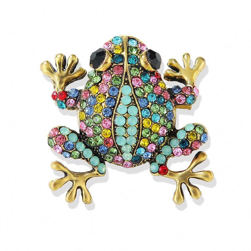 Broche de cristales coloridos de Metal de dibujos animados Retro, accesorios de ropa de moda de rana bonita, Pin de diamantes de imitación