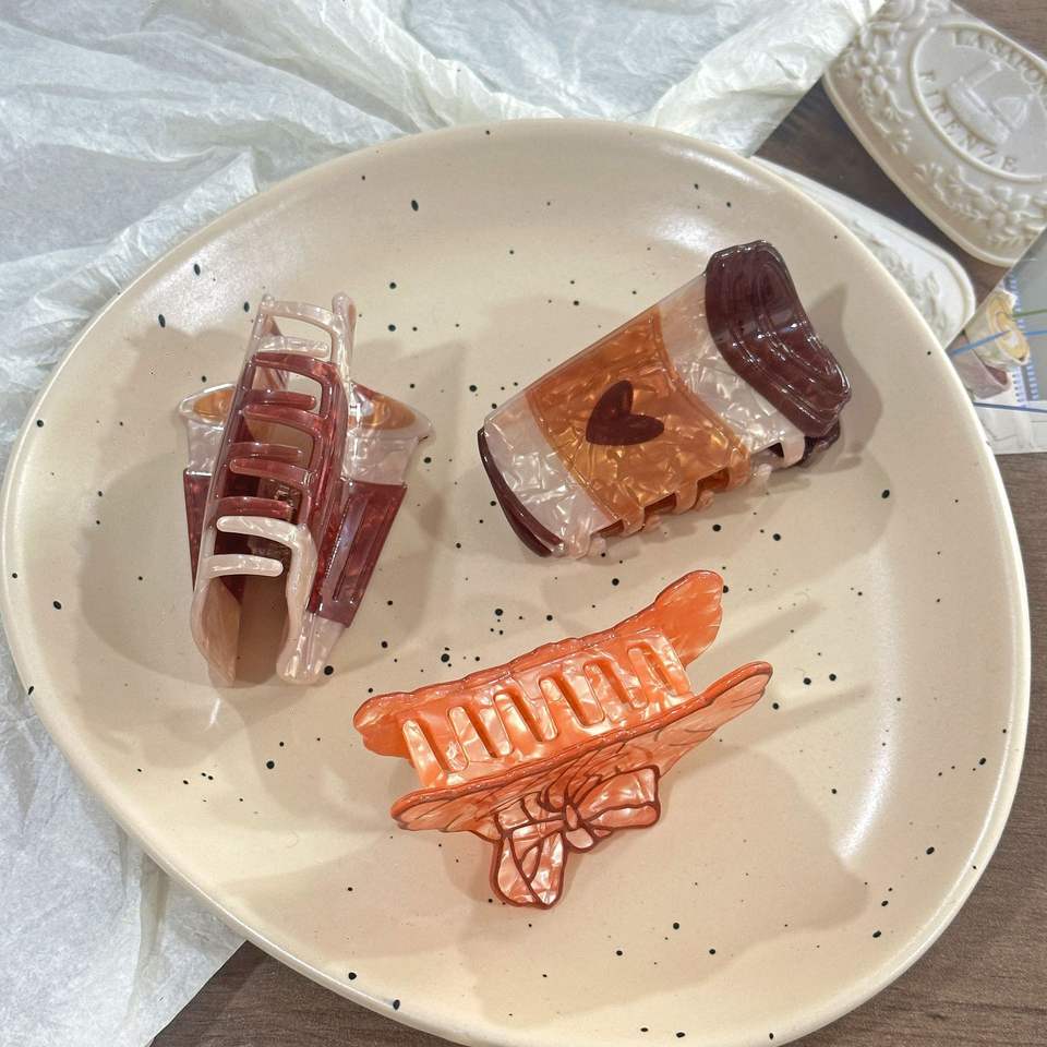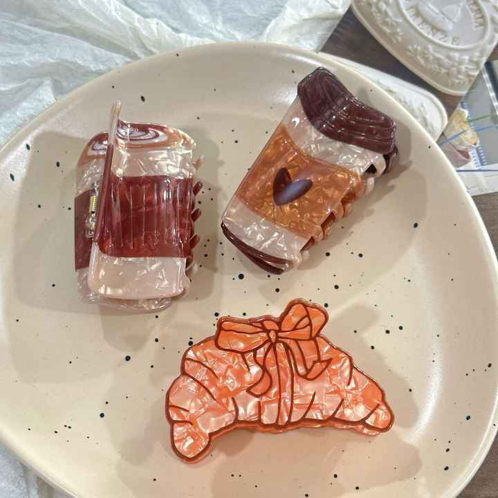 Pinza para el pelo de acetato con diseño de taza de café estilo retro de dibujos animados, creativa y personalizable, con forma de croissant