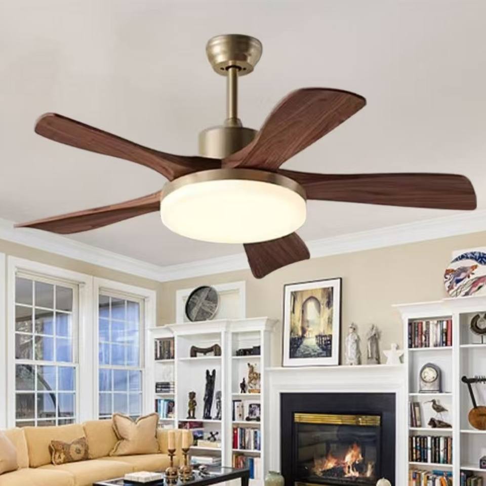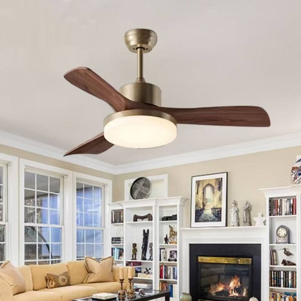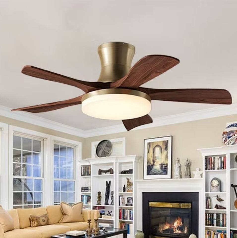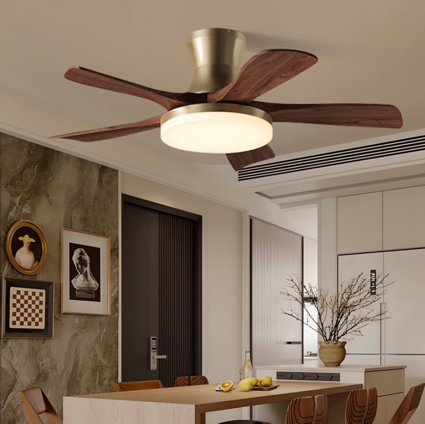 Ventilador de Techo Retro con Luz en Madera de Nogal Antiguo y Madera Maciza, Iluminación de Espectro Completo para Comedor/Dormitorio/Estudio