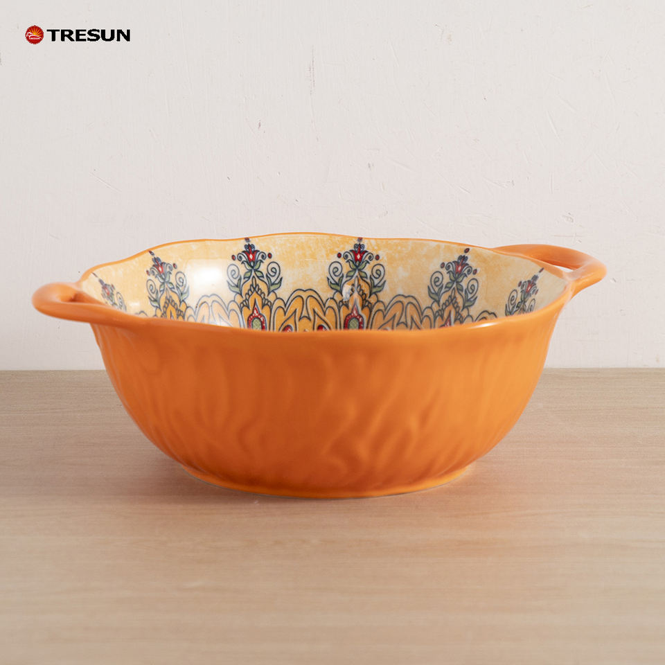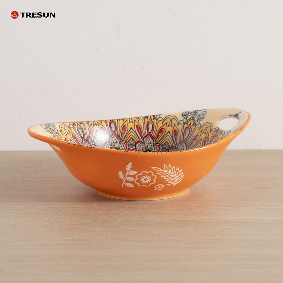 Tazón Grande de Cerámica Estilo Bohemio Retro, Apto para Microondas, para Sopa Ramen, Fideos y Ensaladas